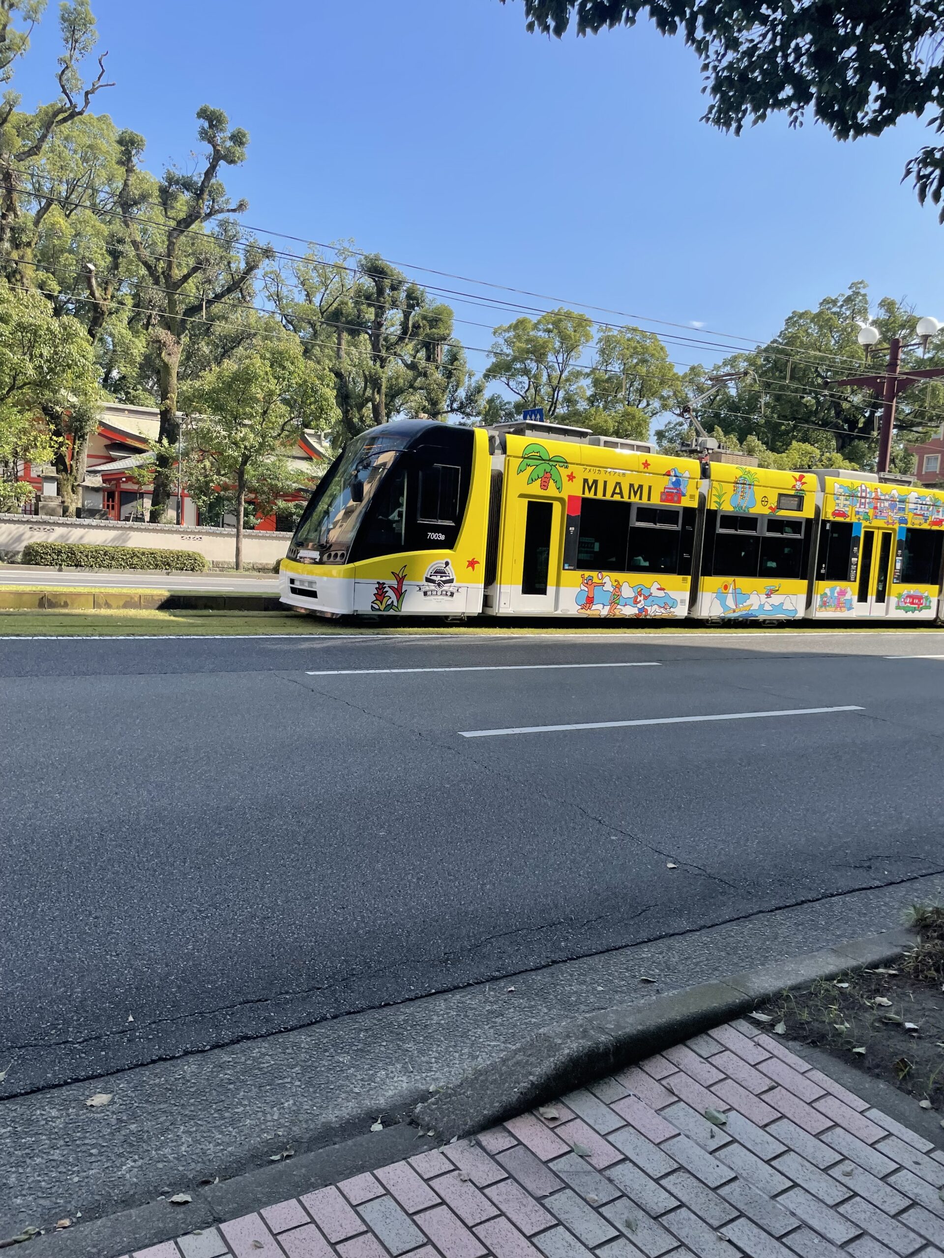 「ここから見る電車と神社のパノラマは抜群やね。」