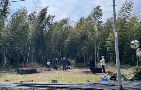 今年も手作りのホップ棚をメンバーさんと一緒に作りました。竹の切り出しから始まり、竹を組み合わせて結びながら、網を通してホップが成長しやすい環境を整えます。