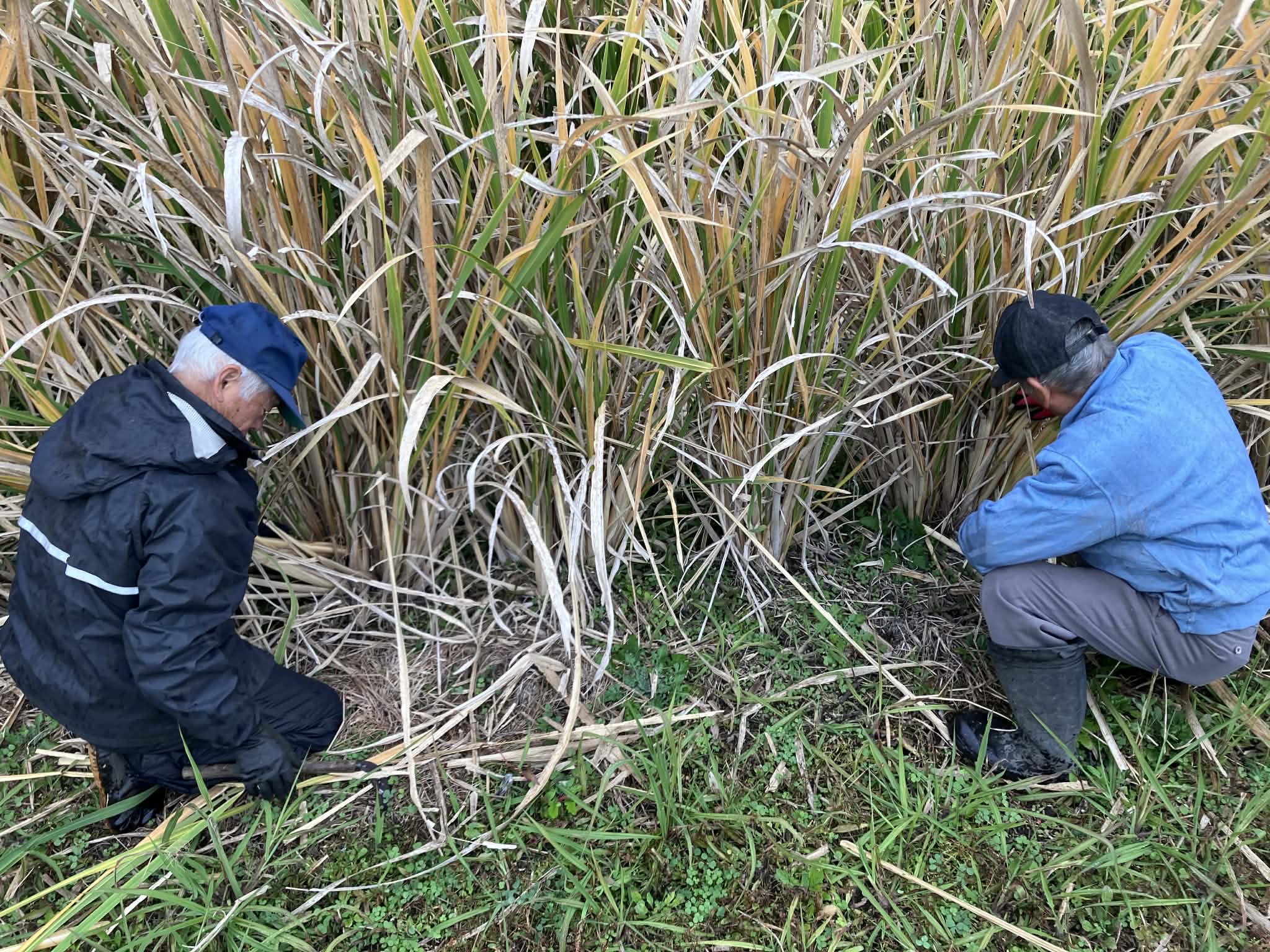 先日、実証圃場にてマコモダケの収穫作業を行いました。